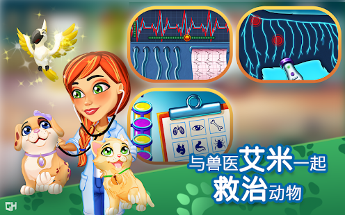 診斷並治療寵物,共有 19 種刺激的小遊戲