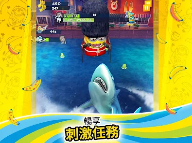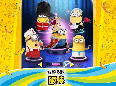 你將與小小兵一同跑過多個瘋狂地點像是反恐聯盟總部、維克特的巢穴或是回到過去的世界。每個地點均有獨特的障礙物等你來挑戰奔跑時要多加留意唷等你準備好了之後你就能進入頂級香蕉房來挑戰本地玩家或是全球玩家並在無限奔跑模式中解鎖大量獎勵啦