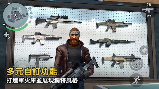 根據個人風格自訂角色按自己的喜好來裝備、融合並進化數百種槍械以及交通工具。