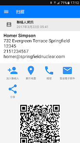其他選項: 創建 QR, 掃描影像, 從圖庫掃描, 通過QR分享您的聯繫資訊