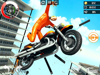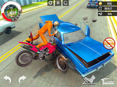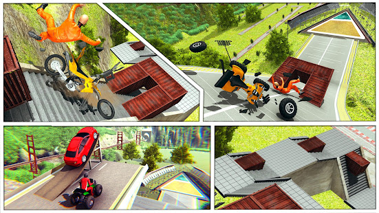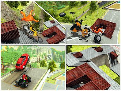 歡迎來到帶有死亡螺旋坡道的自行車撞車事故。從屋頂跳到地面,砸碎重型自行車。享受沉重的自行車碰撞帶來的刺激和刺激。在跳遠坡道,無法數數的樓梯和崎track不平的跑道上打破每件事。越來越多地收集積分,並享受重型摩托車帶來的沼澤碰撞。