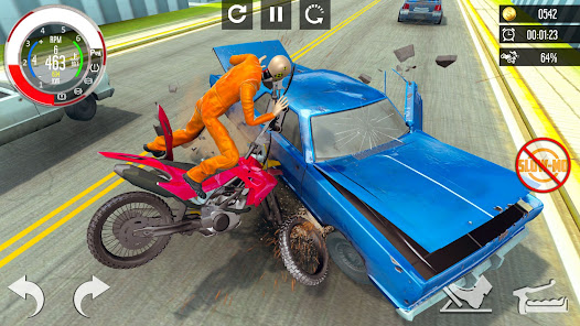 在您的設備中下載Bike Crash Test Simulator 2021:Beam Rider 3D,並成為所有特技賽道的冠軍。在這種真正的碰撞中,您可以盡享特技和碰撞車的跳高。擊敗所有障礙,并快速穿越集裝箱。重型四輪摩托可享受多種天氣條件。在享受《 Bike Crash Beam Drive 3D:Death Rider 2021》之後,不要忘了給我們評分,因為該崩潰遊戲是專門為崩潰愛好者設計的。