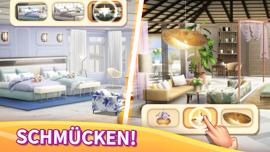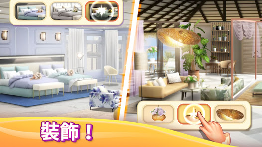 ● 裝飾並解鎖要進行設計的新房間吧!通過越多關卡,就可以開啟新的旅行地點。