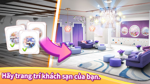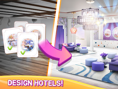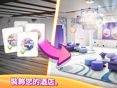 一邊在世界各地旅行,完成有趣的三消益智小遊戲,一邊改造飯店吧!