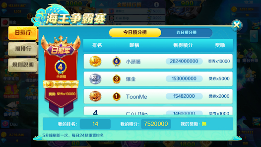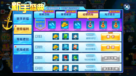 完成捕魚任務,獲得金幣、活動道具,每週更新任務。