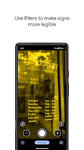 使用相機放大較小的文字、查看物體細節或放大遠處的文字 (例如路標或餐廳櫃台後方的菜單)。套用視覺效果讓對比度不足的文字變得清晰易讀。在低光源環境下系統會自動調整亮度。你也可以視需要拍照並放大檢視相片細節。