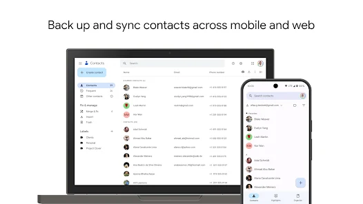 • 將聯絡人資料妥善備份到你的 Google 帳戶