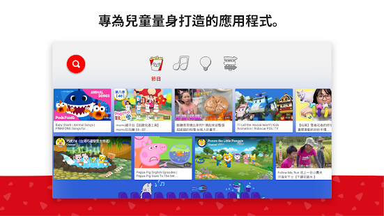 YouTube Kids 致力於提供闔家皆宜的影片更透過工程小組精心打造的多項自動篩選器、人工審查機制和家長意見回饋等措施全力保護年幼的線上使用者。然而系統並 非萬能難免有不當影片成為漏網之魚因此我們不斷努力改善防護措施並提供更多 相關功能進一步協助家長為全家大小創造更合適的觀看體驗。您也可以調整家人的收視體驗例如在電視上觀賞 YouTube Kids 內容時可以選擇開啟或關閉搜尋功能 或是透過「再看一次」功能來查看孩子的觀看記錄。