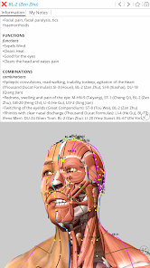 每個穴位,經絡(和解剖模型)都包含完整的文字描述,可以