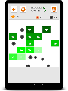當球回到地面時,出現新的磚塊,其餘的磚塊下降。消除磚塊所需的觸摸數量增加。