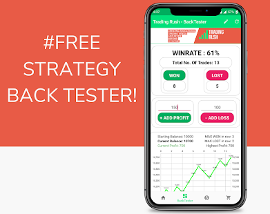 That's Right! Trading Rush App comes with a back Tester Feature, where you can test your favorite Strategy or Indicator effortlessly. Say no to those old boring and Time-consuming methods of testing a strategy.