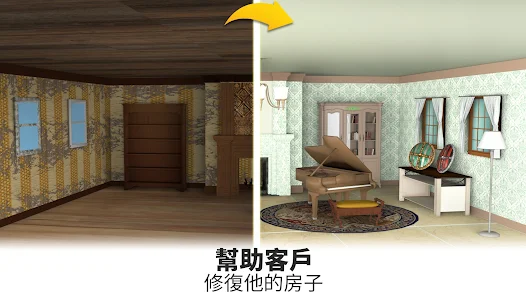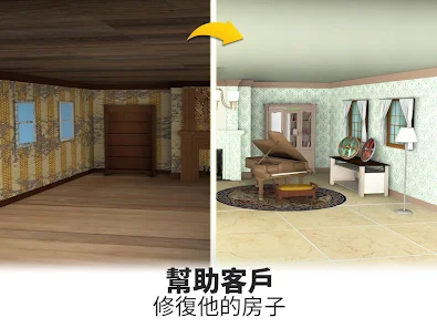 *獎勵用你那驚人的裝修改造技能來建造翻身設計製作翻新還原修復創建和裝飾客戶們理想中夢寐以求的房屋花園或豪宅同時解鎖多種獎勵展現你的能力來感動你的客戶以獲得各種獎勵和報酬。除了遊戲內的獎勵你還可以通過這款遊戲磨練自己的品味和提升自己爹技能趕快來開創人生新的一條路即便被上帝關上了一扇門不需要他人的幫助現在此時此刻你有機會為自己打開一扇通往陽光之道的窗口這是一個讓你發揮你那過人的建造翻身設計製作翻新還原修復創建和裝飾的技能的機會。快來表現和展現出你的設計風格讓夢想中的家房子房屋成為現實。這款遊戲可說是自由改造嘉年華設計和翻新不同的房間風格包括家庭友好型客廳質樸的廚房時尚的浴室別緻的臥室私人書房令人驚嘆的辦公空間和涼爽的甲板通過遊戲磨練自己的品味和技能快來表現和展現出你的設計風格讓夢想中的家你的夢幻家園房子房屋成為現實。