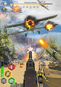 儘管有重型炸彈和氣墊船的持續攻擊 戰爭空襲 戰鬥機直升機 即使是飛行的無人機來自不同戰爭的敵人也會增加難度並挑戰士兵的射擊技巧。