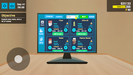 在你的超市模擬器中儲備各種商品從薯條和薯條到肉類、漢堡、蔬菜和水果。在網路上以實惠的價格購買這些物品並將它們排列在超市的貨架上。擴大您的商店擴大規模並提供一流的服務。推出促銷活動並設定有競爭力的價格以確保快速銷售。管理現金和銀行卡交易同時保持警惕防止潛在的盜竊。考慮實施安全措施來保護您的超市免受任何潛在的小偷的侵害。隨著時間的推移預計商店裝修的需要例如重新粉刷牆壁或安裝新的照明和裝飾。所有這一切都在超市模擬器的沉浸式世界中展開該模擬器擁有卓越、逼真的 3D 圖形。玩得開心但在爭取真正成功的同時保持財務安全。