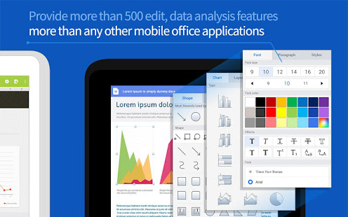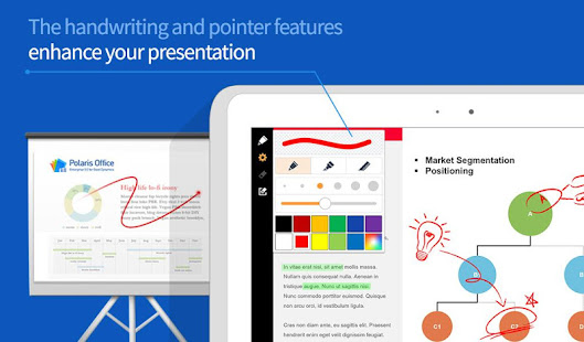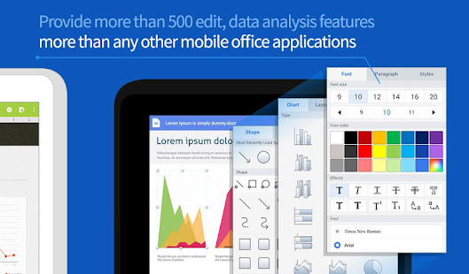 查看和編輯Microsoft Office文檔/視圖.pdf和.hwp文件/支持快速滾動/約80種智能藝術和18種2D,3D圖表/支持提供超過300編輯功能/有用和各種模板的新的創造/幻燈片模式/幻燈片播放/指針網頁過渡特效和繪圖的幻燈片
