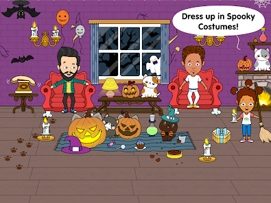 在萬聖節主題的房間里和你的貓玩得開心。給他們穿上女巫服裝等等