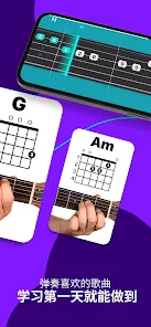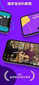 透過由世界級音樂老師製作的教程搭配自己的步調學習彈奏吉他。練習的過程 app 還會給你即時回饋