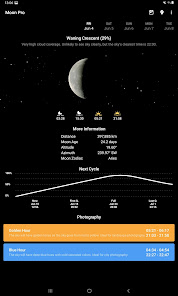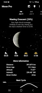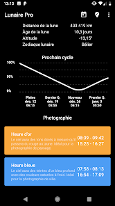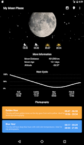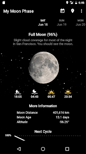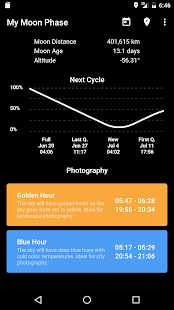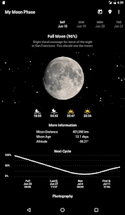 - Find the upcoming moon phases straight on the main screen - you'll instantly know when the next full moon, new moon, first quarter and last quarter are.