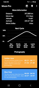 My Moon Phase is the best app for tracking the lunar calendar. It has a sleek dark design which makes it easy to view information such as the current moon cycle, moonrise & moonset times as well as extras such as when the next full moon will be. If you're interested in moon photography, you can also find out when the golden hours and blue hours are so you can take the most beautiful photos.