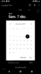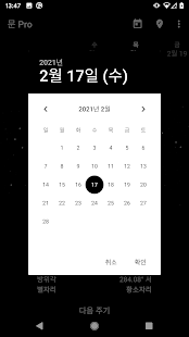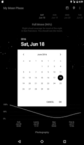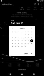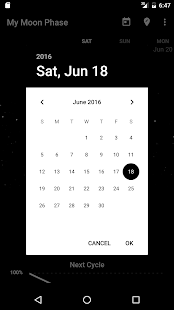 - View the moon cycle for any date in the future by scrolling on the date bar or by tapping the calendar button!