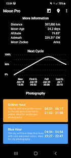 - Golden hour and blue hour times are available to allow you to calculate when to take photos.