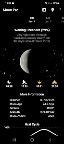 - See how cloudy the sky is expected to be on upcoming days so you can work out whether you'll be able to see the moon or not!