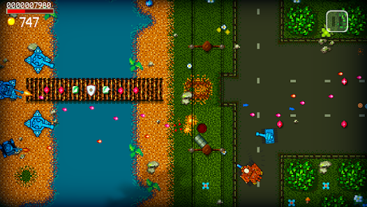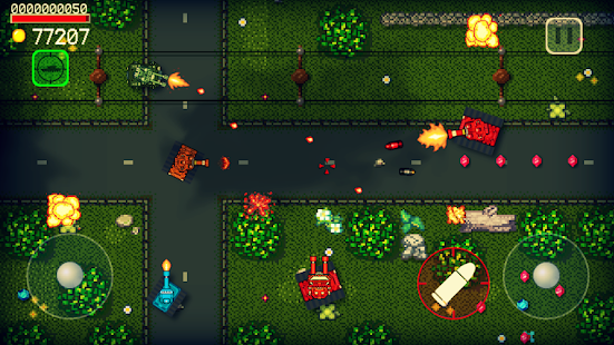 左搖桿控制發動機,右搖桿控制塔。屏幕左側的像素槽是autodisco。自動瞄準使您可以指揮敵方坦克,從而簡化瞄準。單擊屏幕上的任何空白點將立即使油箱轉台朝該方向轉動。不要錯過金幣和水晶,它們可以讓您快速提高音調。