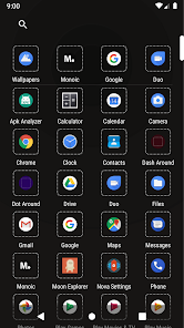 Dot Around icon mask is tested to work with Nova, Apex or ADW Launcher. These launchers officially support icon masks and work flawlessly. Overall icon size can be increased beyond 100% through any of the mentioned launchers to suit your taste and needs.
