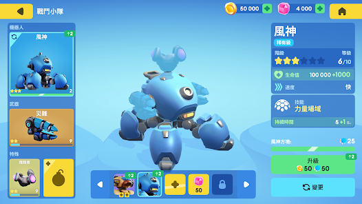 機器人 走路、飛行、翻滾、四足款但全部都很致命把他們全數解鎖並升級