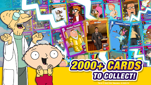 STEWIE、BENDER、LANA、PAM、TINA BELCHER、HANK HILL 和 ROGER THE ALIEN 在這款史詩般的 CCG 中等著您快來在 PVP 決鬥中一路戰鬥登上巔峰吧