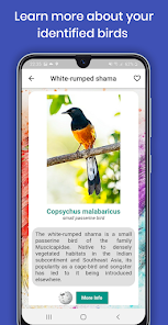 Take pictures of new bird species and let the the app automatically identify the bird from photo. Take photos of birds and let the app help you identify its name and details.