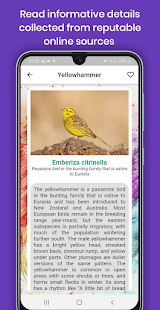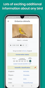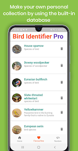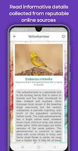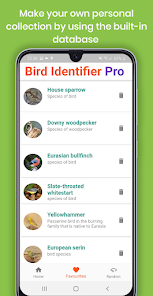With this smart bird app you can use your camera to identify unknown species of birds. After bird identifier gives its identification results you can save that bird to your list of favourites and also find out more by reading about that bird in the online database.