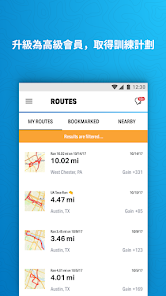 路線功能可供搜尋附近的跑步地點、儲存最愛路線、新增路線並與其他人分享路線。