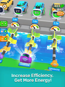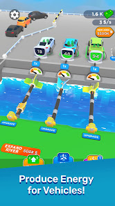 通過在河流周圍建立發電廠來產生能量並用它為充電站供電。在車輛充電時賺錢並用它來購買新的和更強大的捲軸。隨著您的進步合併捲軸以創建更強大的充電站並擴展您的網絡以滿足對電動汽車充電不斷增長的需求。