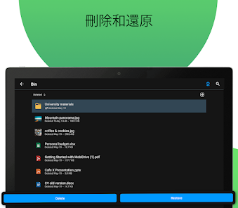 可在特殊「垃圾桶」專區中管理刪除的檔案。