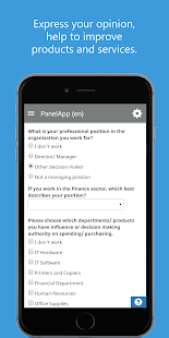 公司和學術研究人員想聽聽您的意見,使他們能夠開發新產品,提高其現有的產品和服務。使用我們的應用程序,你可以在有趣的調查,參與和賺錢與您的參與。無論是什麼時候,或你在哪裡。