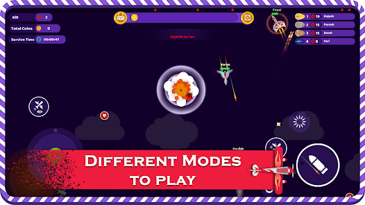 就在天空中,以避免來自對方球隊的子彈。您可以在天空中的戰機史詩般的戰鬥中控制戰機,戰鬥機,空戰,導彈,空中戰鬥機,空中戰鬥機的子彈路徑。您可以使用不同的模式進行選擇:關卡、boss 和無盡模式。