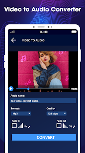 ✅ 視頻到 Mp3 轉換器:選擇一個視頻並單擊轉換視頻文件將傳輸到具有各種選項(大小、格式、質量)的音頻文件。您可以提取音頻並將其保存到您設備的文件夾中。