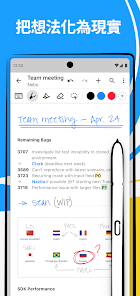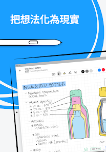 您能在可擴大的版面上針對各種想法進行腦力激盪還可書寫不拘形式的筆記混用手寫內容、文字、繪圖、圖表和圖片。可透過筆勢來清除和編輯內容還能把手寫內容和手繪形狀轉換成輸入文字和完美形式。