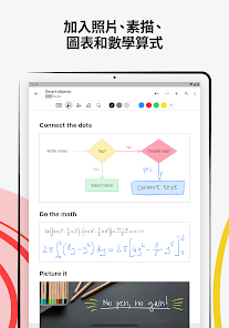 可加入照片、素描和智慧物件例如數學公式和圖表。