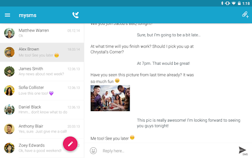 mysms enables you to manage your Android SMS notifications on your computer and tablet. You also have the choice to use mysms as default SMS app on your Android phone offering you great customization options, expandable notifications and many more features that your preinstalled stock SMS app cannot beat.