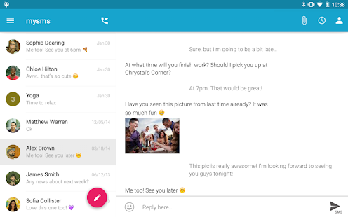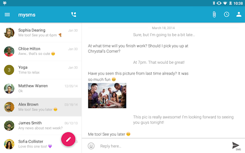 *** PLEASE NOTE: This app is not self-contained.To be able to use mysms tablet, you have to have mysms installed on your Android smartphone. ***