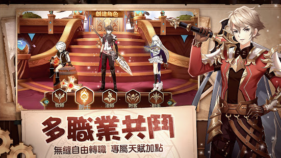 近戰高防劍士魔法脆皮法師治愈係牧師遠程高傷弓箭手四大職業無縫進階自由轉職。升級解鎖新技能天賦樹系統自由加點打造屬於你的最強職業