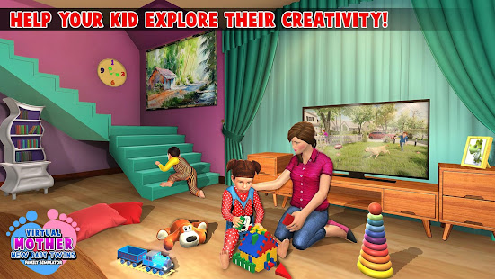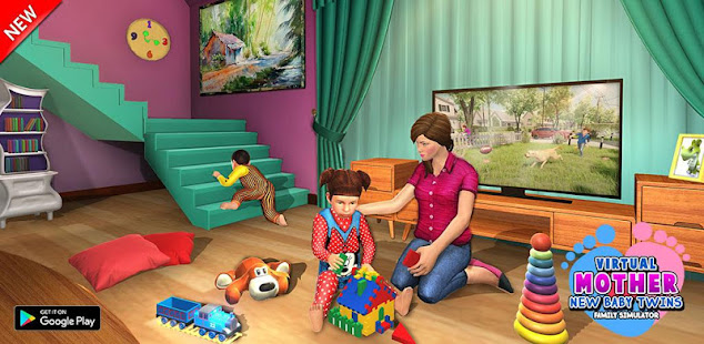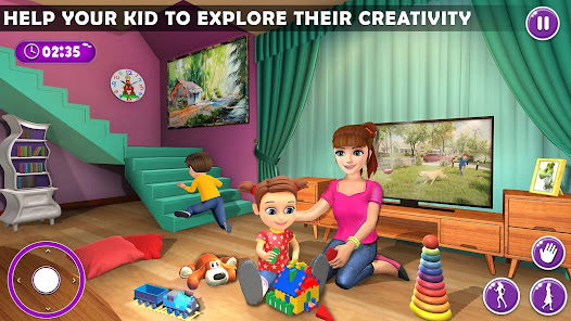 家庭遊戲中的虛擬母親帶著大房子的嬰兒!準備好在母親模擬器中與雙胞胎寶寶一起享受家庭歡樂時光,並享受在雙胞胎兒童遊戲、兒童遊戲中的虛擬兒童、女孩兒童遊戲中的女孩保姆中與新生嬰兒雙胞胎玩耍 虛擬媽媽雙胞胎嬰兒家庭模擬器。快點在媽媽和嬰兒遊戲中的虛擬媽媽!孩子和虛擬爸爸遲到了,嬰兒雙胞胎在母親模擬器 3D 中哭泣。虛擬媽媽正忙著在兒童模擬器中為孩子們做早餐,而家庭保姆正在照顧哭泣的雙胞胎嬰兒模擬。堅持超級媽媽模擬器3D!在母親模擬器遊戲中深呼吸,放鬆並照顧媽媽的雙胞胎寶寶。與孩子和丈夫說再見,並開始在家庭遊戲中做虛擬家庭日常家務。家庭房子一團糟,虛擬媽媽遊戲需要完成所有家務,如烹飪家庭晚餐,在媽媽和寶寶遊戲中照顧新生兒雙胞胎嬰兒,打掃房間,在嬰兒和媽媽遊戲中與廚房幫手一起洗衣服。保持家庭整潔乾淨,成為最佳兒童虛擬媽媽遊戲中的終極家庭女性。