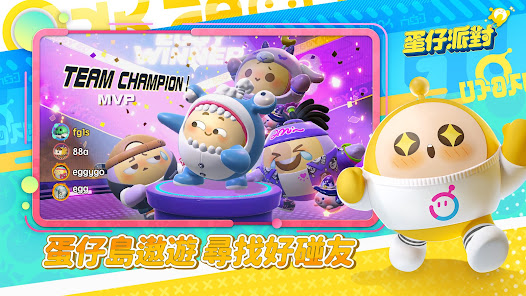 和好碰友們一起參加多人派對碰撞彈跳歡樂貼貼在蛋仔島遨遊要當心各種賽道機關也許也要當心其他蛋仔這個派對有點上頭你可以嗨上一整天