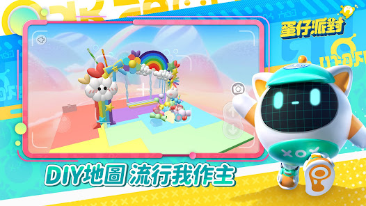 派對時間到在這裡你可以找到許多可愛Q萌的蛋仔一同登上巨型摩天輪俯瞰蛋仔島、搭乘噴射小飛機空中遨遊更有彈力蹦床、鋼琴地毯等超多遊樂設施一起來開趴吧