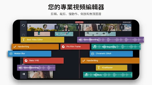 如果您正在尋找自帶音樂、素材庫的視頻編輯應用、電子相冊製作器或音樂視頻編輯軟件KineMaster(巧影)將是移動端視頻編輯器的最佳選擇。