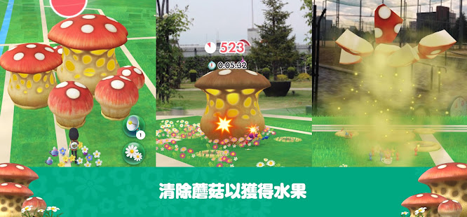 與好友組隊打倒蘑菇獲得獎勵組成夢幻皮克敏隊伍增加分數並取得更稀有的水果類型