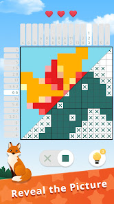 Nonogram is a sudoku-like picture cross puzzle. You can follow simple rules to get the correct answers and complete the color picture in the world of pictocross.