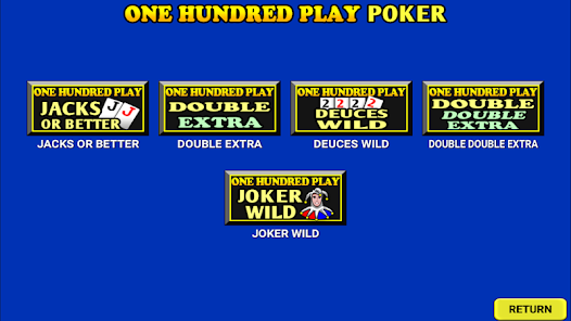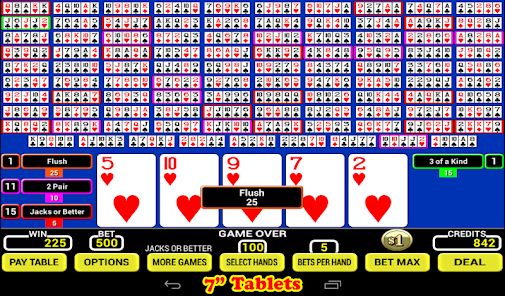 一百手多人視頻撲克。一次 100 隻手進行 100 次動作!與老虎機不同,視頻撲克允許玩家使用技巧來擊敗莊家。就像在拉斯維加斯一樣玩這個流行的遊戲。
